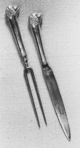 Hard to believe now, but it took well over a thousand years for most of civilized Europe to realize that everything — from clothing, to hands, to the wigs on their heads — could be kept more sanitary by using a utensil to pick up their food. This idea of distancing themselves from the preceding nastiness of the Middle Ages was a common motivation during the Renaissance, and the advent of this simple two-tined fork would be followed by a floodgate of revised table etiquette starting in the royal court and trickling down to commoners. Being fierce believers and protectors of their cultural past, the modern Frenchman sees tradition as a form of patriotism, table manners included. I’ve talked a bit about this before here.