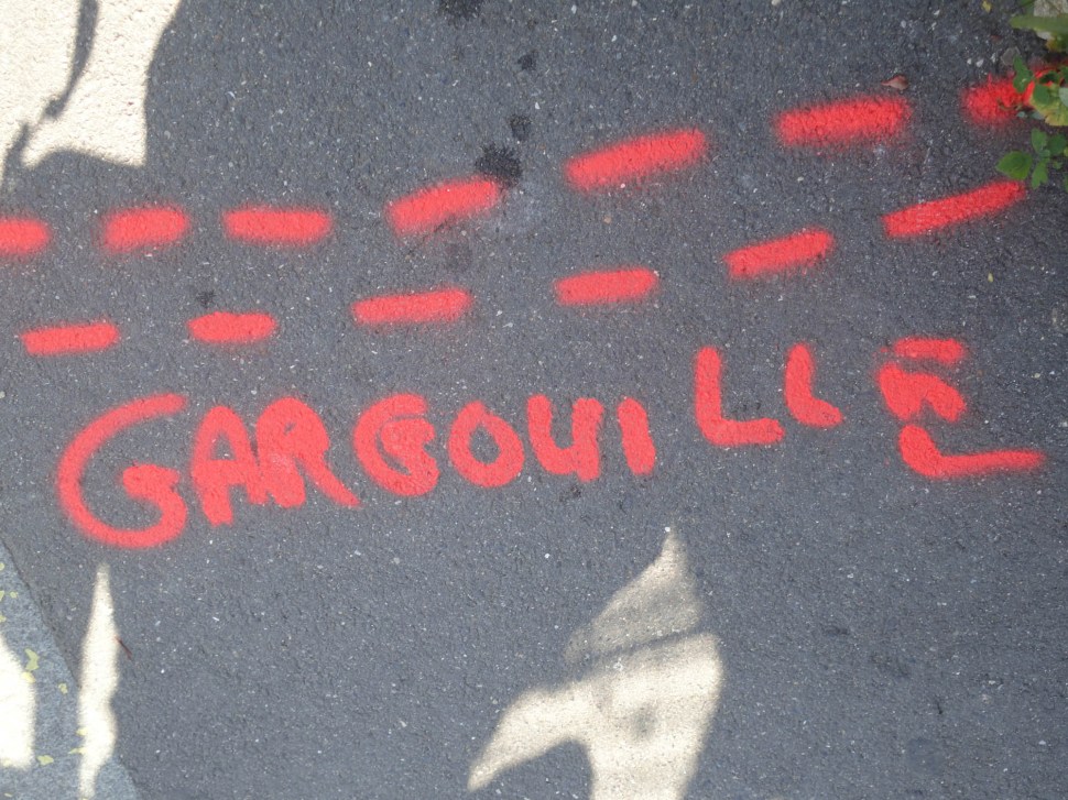 No translating was necessary; it’s a word I’m familiar with thanks to my addiction to all things medieval and Gothic. So imagine my curiosity and intrigue to find a spray-painted indication marking out the future spot—just next to our apartment—of a gargoyle!