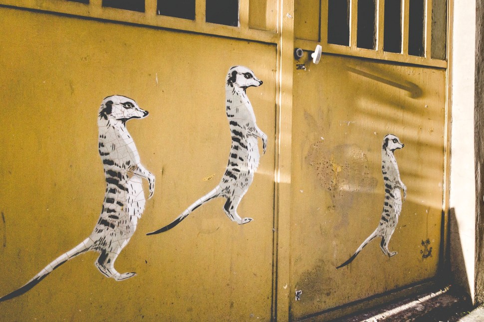 Meerkats on mustard metal! But seriously also love the mirrored Doisneau couple – artist upon artist upon artist….