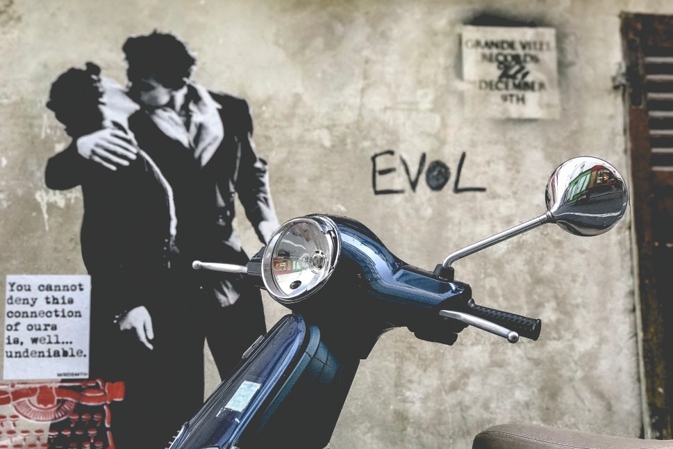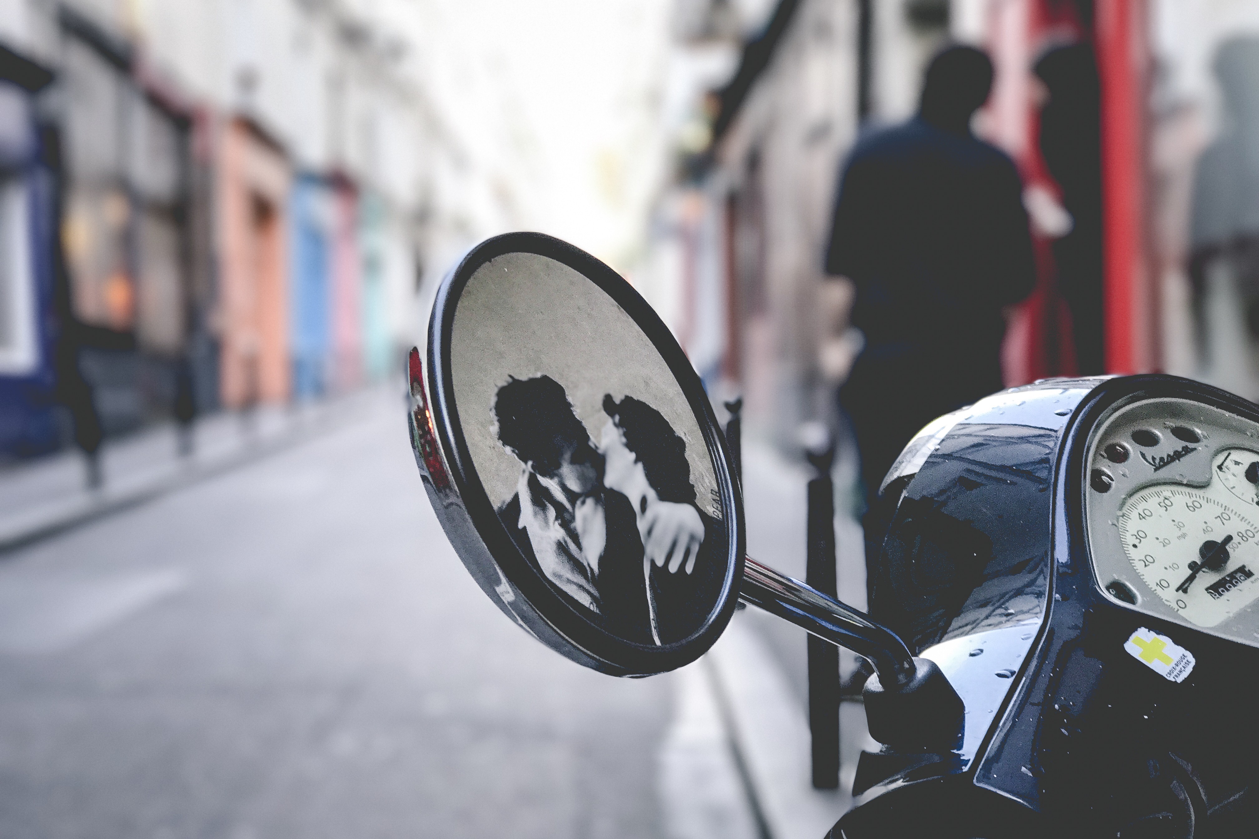 How can I possibly choose just one favorite, Corey?! Well, OK … if pressed I would choose the reflection of Robert Doisneau’s kiss in the scooter mirror. It’s intriguing and arresting on its own, but even more so when you add the out-of-focus couple in the background. Can’t help wondering: Is the mirror giving us some hidden insight into their relationship? Or is it a reflection of the past — or maybe their future? All of this drama and conjecture in one frame! Nicely done.