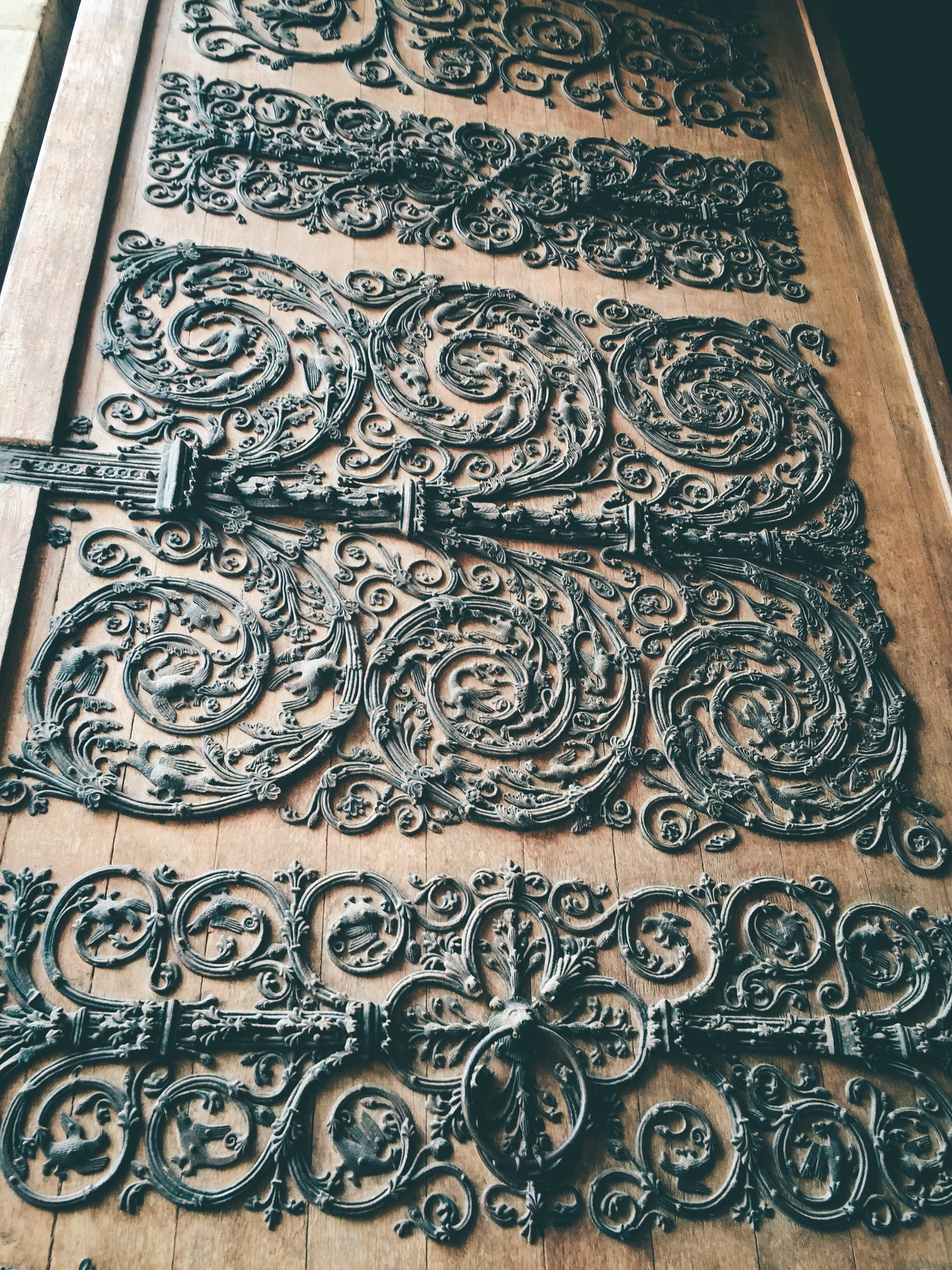 As a result of construction always starting at the back of a church (to get the altar up and running asap), facades and entrances were added last. When it came to Notre Dame’s doors Mr. Biscornet – a young metal smith keen to prove himself on the grand stage – convinced the Church he was their man.